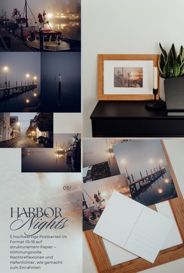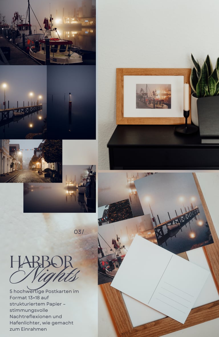 Stimmungsvolle Nachtreflexionen und Hafenlichter – gemacht für langsame, ruhige Abende.